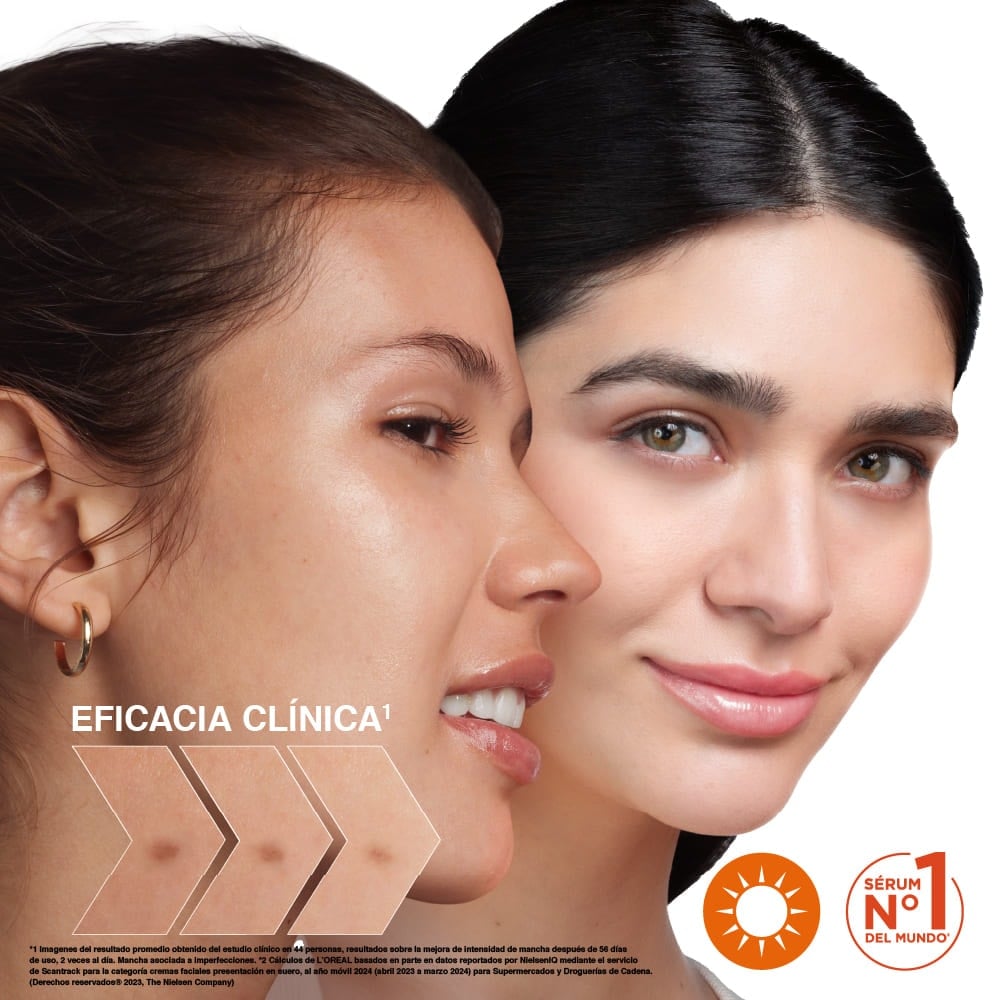 - Aclara las manchas oscuras causadas por la hiperpigmentación y ayuda a igualar el tono de la piel.